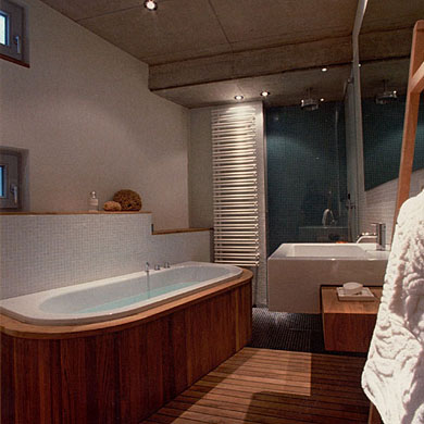 Bad mit Teak und Glasmosaik